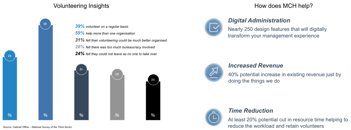 MCH generates real financial value, saves significant amounts of time and resource and helps safeguard the future of any volunteer organisation, leaving you to focus on the things that matter.